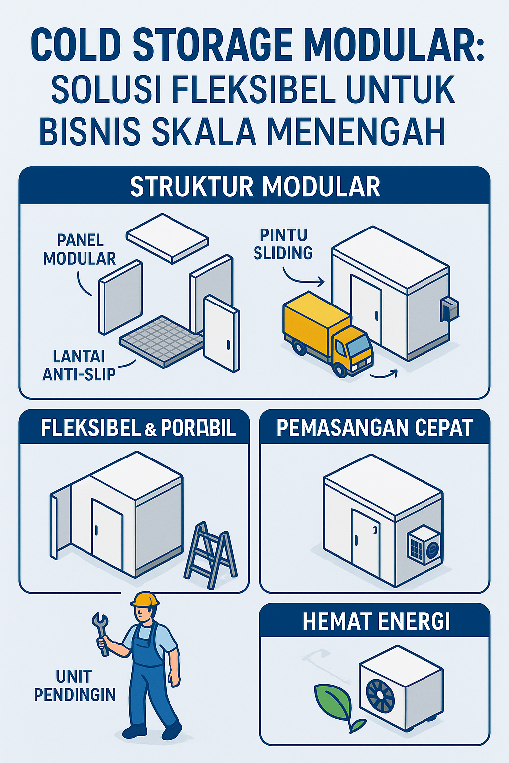 Jawabannya adalah Cold Storage Modular solusi pendingin modern yang dapat disesuaikan, dipindahkan, dan diperluas dengan cepat sesuai kebutuhan bisnis Anda.