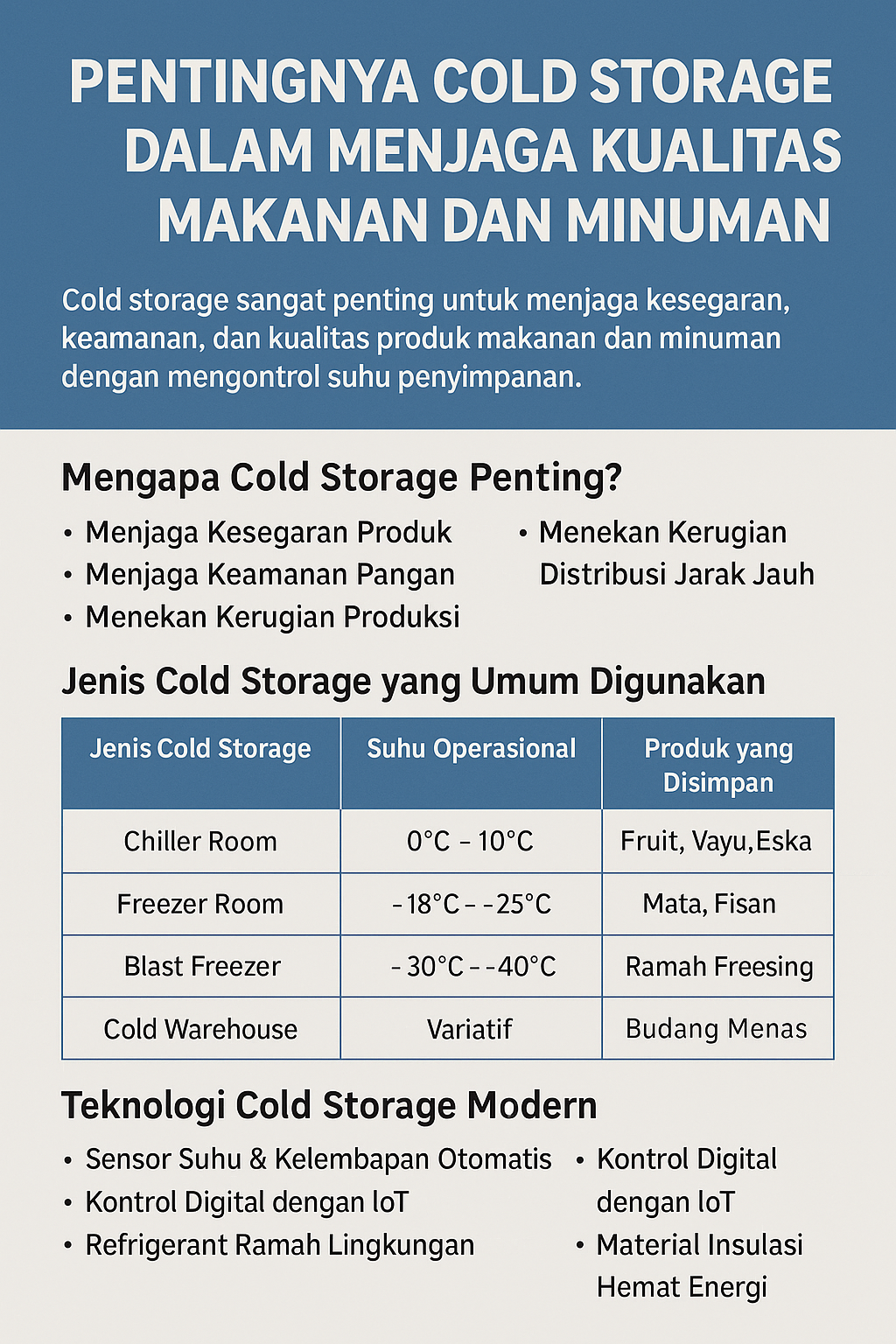Cold storage bukan sekadar ruang pendingin, tapi merupakan investasi strategis untuk menjaga kualitas, efisiensi, dan reputasi bisnis.
